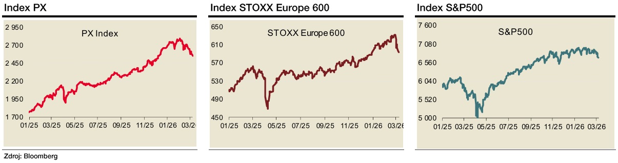 Americký index S&P500 začal pondělní obchodování slabší o 1,5 procenta, následně pokles zmírnil na 0,6 procenta. Evropské akcie prostřednictvím indexu STOXX Europe 600 zahájily nový týden poklesem o až 2,5 procenta, následně ale částečně došlo k uklidnění situace. Krátce před koncem pondělního obchodování byla ztráta kolem 0,7 procenta.