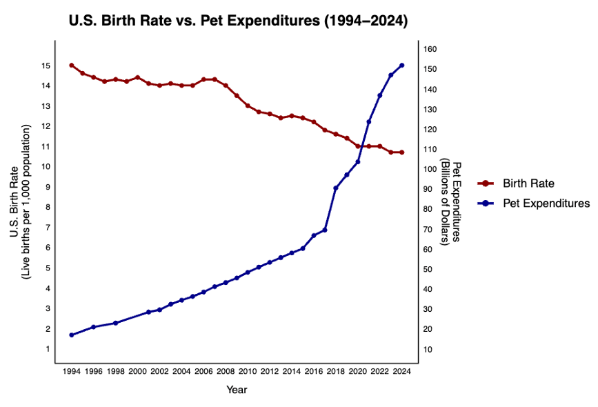 S povážlivě klesající porodností se i v Česku rozšiřuje fenomén bezdětných domácností, které si dítě nahrazují nejčastěji psem či kočkou. Podobná situace panuje i v ekonomicky nejvyspělejších zemích světa, včetně USA.