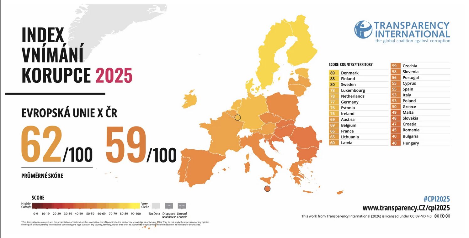 Samotní zástupci Transparency International ale situaci tak nadšeně nevidí. „Aktuální bodový zisk Česka v Indexu vnímání korupce za rok 2025 odráží zejména nedostatečnou snahu bývalé vlády Petra Fialy omezovat korupci. Legislativu týkající se střetu zájmů nebyla schopna novelizovat.