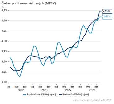 Po sezonním očištění se podíl nezaměstnaných zvýšil dokonce na 4,7 procenta, což signalizuje pokračující zvolnění trhu práce jdoucí nad rámec typické sezonnosti. V říjnu přitom dochází k nárůstu náboru před vánoční sezonou, zejména v sektoru e-commerce, logistiky a maloobchodu.