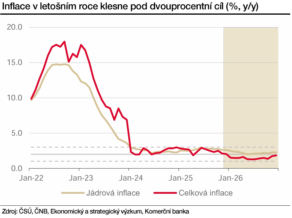Jádrová inflace pak podle nás stagnovala na 2,6 procenta meziročně. Po loňských 2,4 až 2,5 procenta odhadujeme, že inflace v letošním roce v průměru klesne na zhruba 1,5 procenta. Významně k tomu přispěje převedení plateb na obnovitelné zdroje energie z domácností na stát platné od letošního ledna.