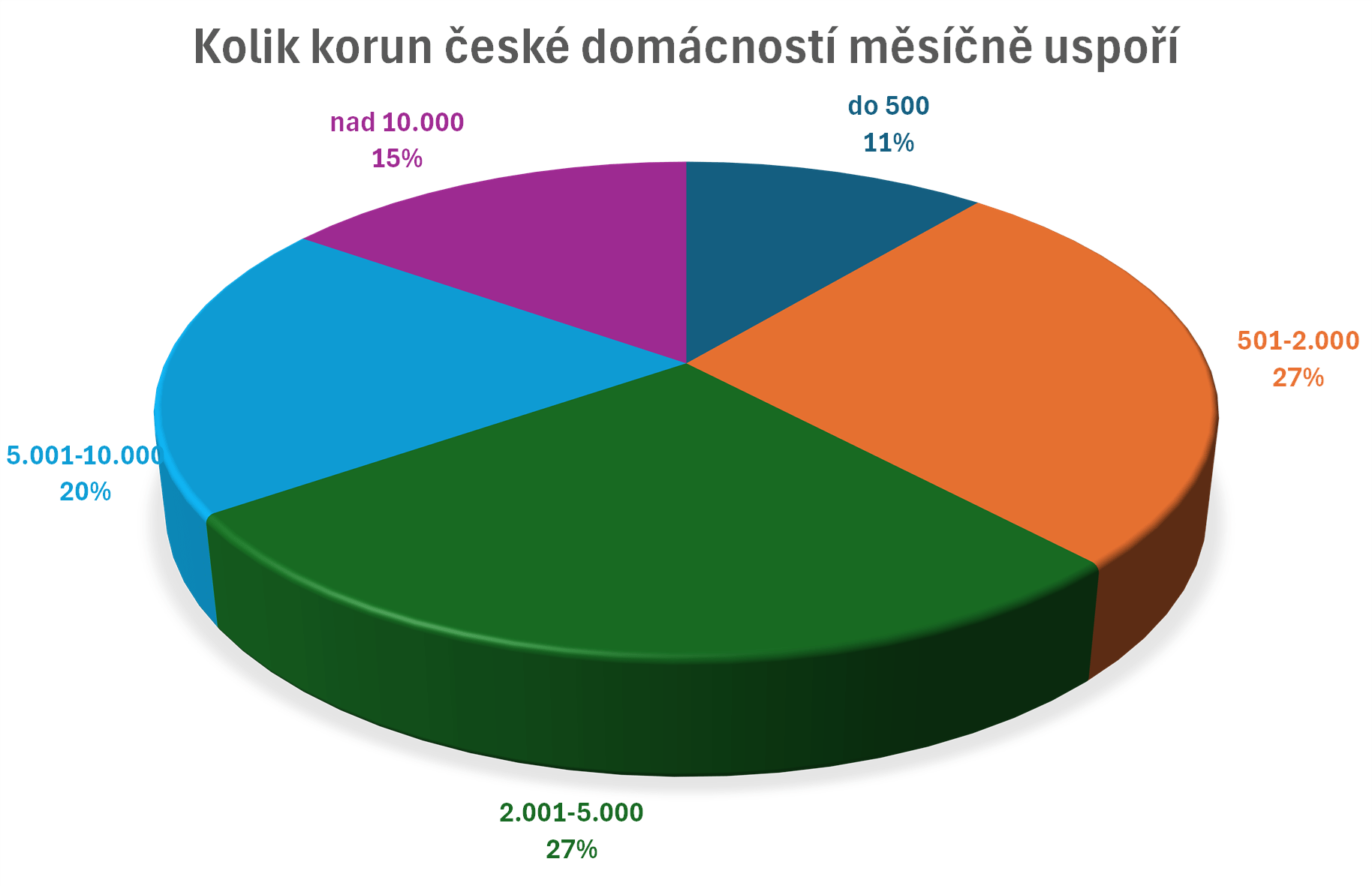 Průzkum ukázal, že v průběhu posledních dvou let se výrazně zvýšil podíl lidí, kteří spoří více než pět tisíc korun měsíčně (z 26 % na 35 %), zatímco podíl těch, kteří si dokážou dát stranou méně než tisíc korun, se prudce snížil (z 32 % na 22 %). Zlepšil se i podíl lidí, kteří by s úsporami zvládli dočasný výpadek příjmů.