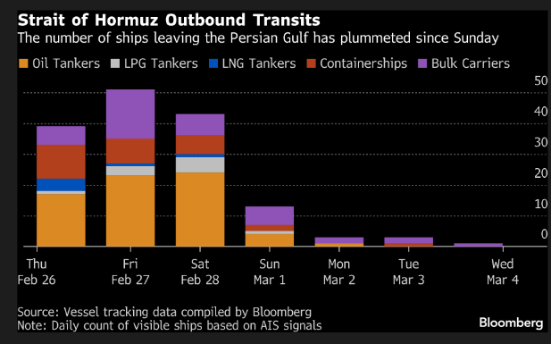 Hormuzský průliv dosud v historii nikdy takto uzavřený nebyl. V tomto týdnu v reakci na hrozící výpadek v zásobování zemním plynem stoupla jeho burzovní cena v Evropě o zhruba 55 procent, ropa Brent zdražila o přibližně 18 procent.
