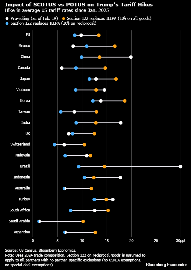 Trumpova administrativa zřejmě bude usilovat, aby sazba – a tedy i příslušné inkaso – zůstala blízko dosavadní úrovni i po jeho skončení. To se však nemusí bezezbytku povést, kvůli vyšší legislativní komplikovanosti zavádění cel opřených o jiný právní základ, než o jaký se opírala cla reciproční.