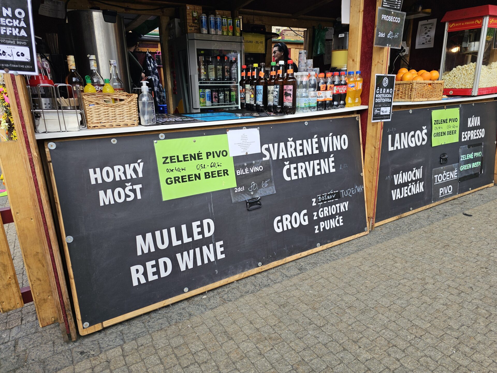 Na své si přijdou i ženy: Panák domácího vaječňáku stojí 60 korun, kdo chce teplé nealko, může si dát horké jablko za padesát. Standardní káva je u jednoho stánku za 60 korun, kdo má rád Latté, připlatí si dvacku. Kakao je u stejného stánku za 60 a horká čokoláda za 70 korun.