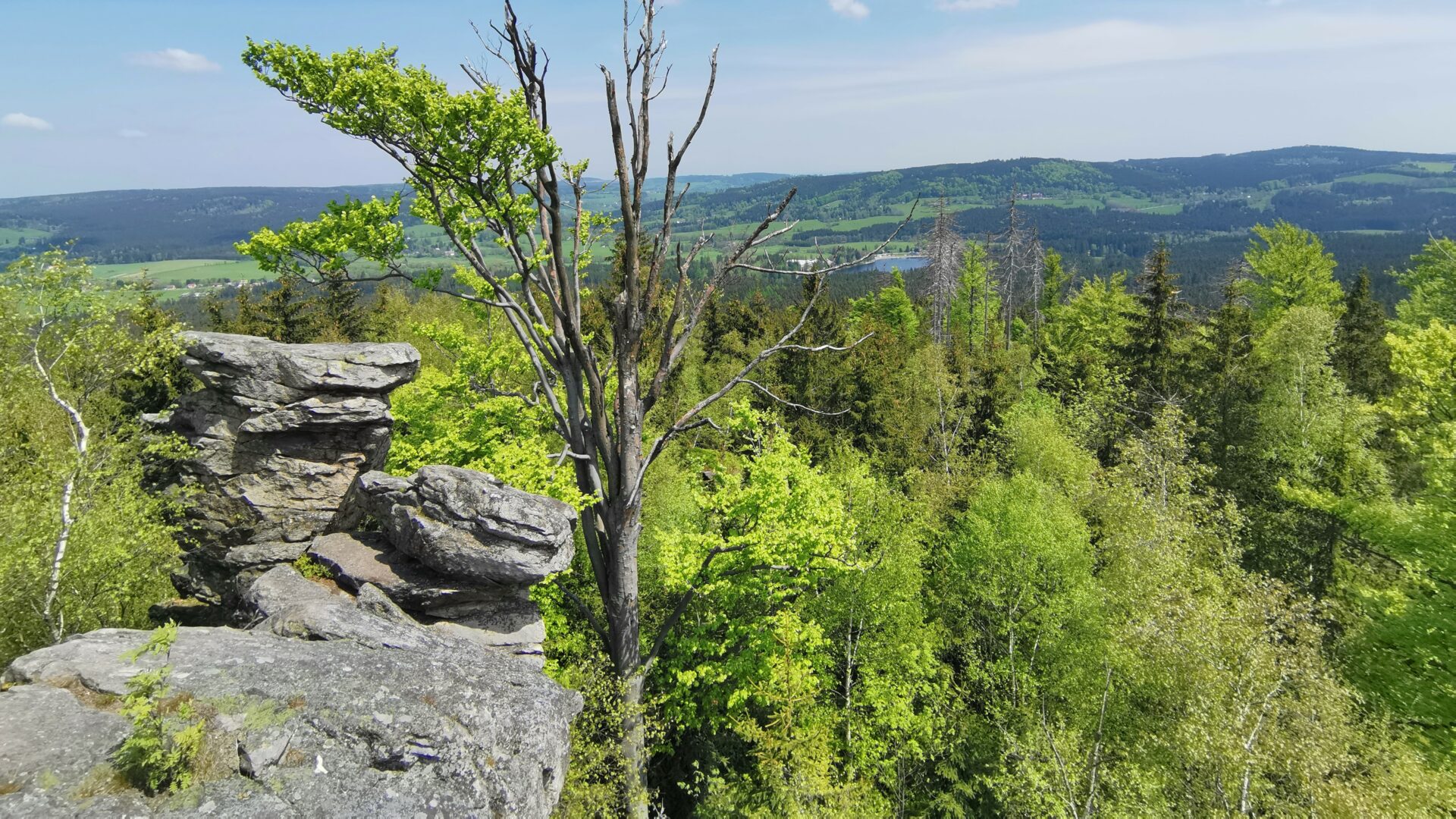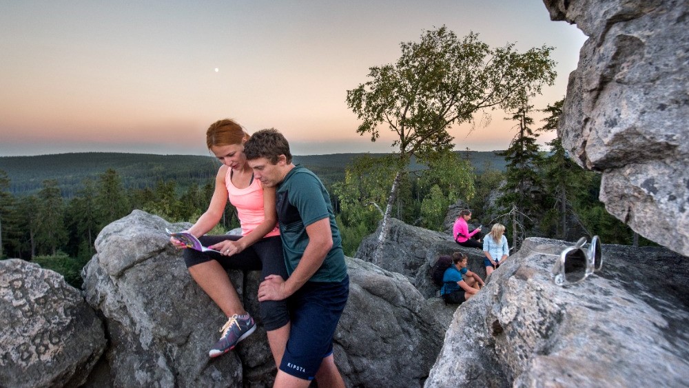 Před vámi je pak ještě výstup na nejvyšší bod Žďárských vrchů, kterým je Devět skal. Tvoří jej skalní formace členěné do devíti mohutných bloků – takzvaných kazatelen, které měří až 15 metrů.