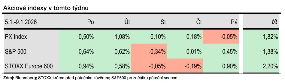 Americký širokopásmový index S&P500 za první čtyři dny tohoto týdne posílil o 0,92 procenta, když lehce korigoval jen ve středu. V pátek začalo obchodování růstem o 0,5 procenta. Za celý týden to vypadá na zhodnocení o 1,4 procenta.