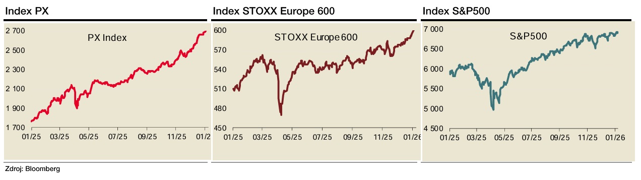Evropský index STOXX Europe 600 by v pátek chvíli před koncem obchodování na novém maximu. Roste o 0,9 procenta a za tento týden si připíše přes dvě procenta.