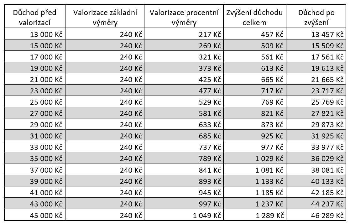 Zvýšení důchodů se odvíjí právě od růstu cen, který se měří indexem životních nákladů domácností důchodců. V lednu budou důchody valorizovány ve struktuře o 240 korun navýšení základní výměry a o 2,6 procenta navýšení procentní výměry.